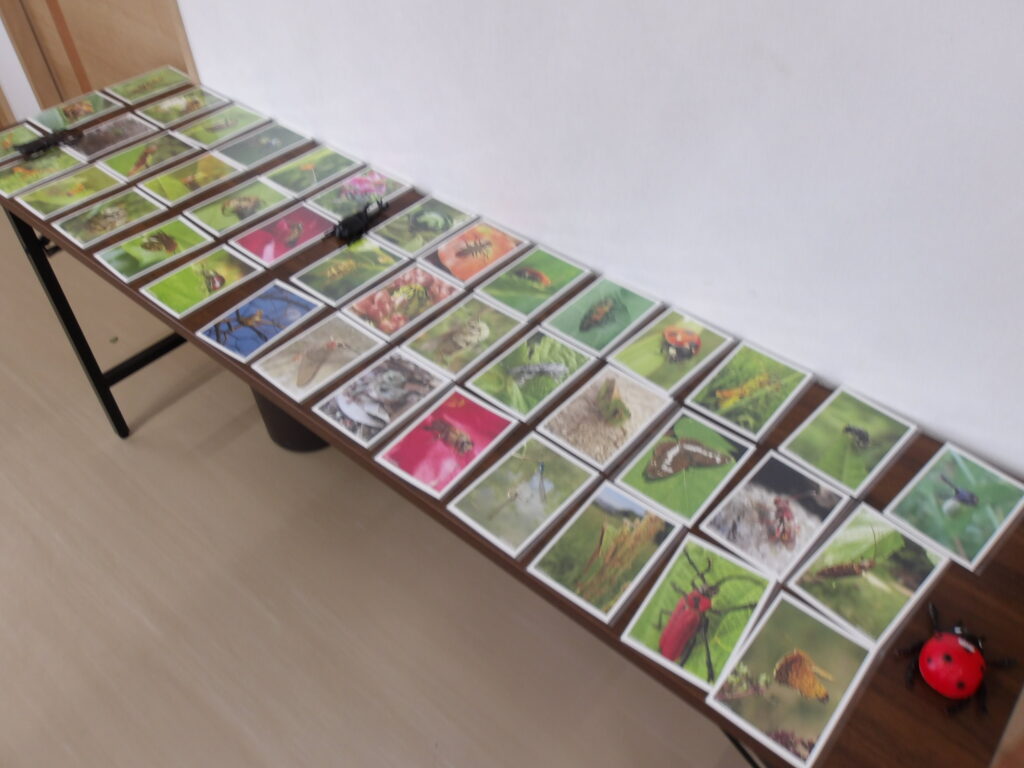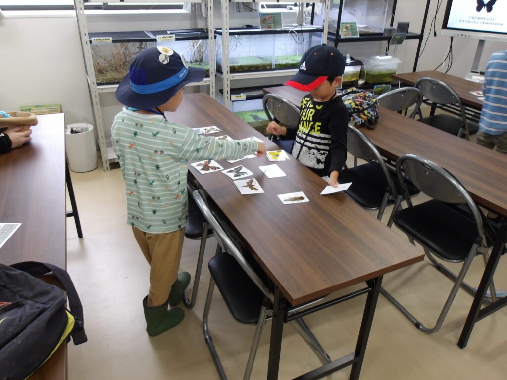 カードゲームのようにチョウの印刷された模様で名前を当てるチョウゲームを開催。