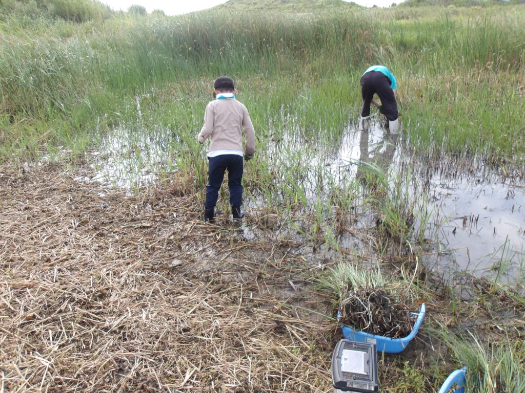 作業後にはさっそくチュウサギが飛来してカエルやバッタを食べまくっていました。