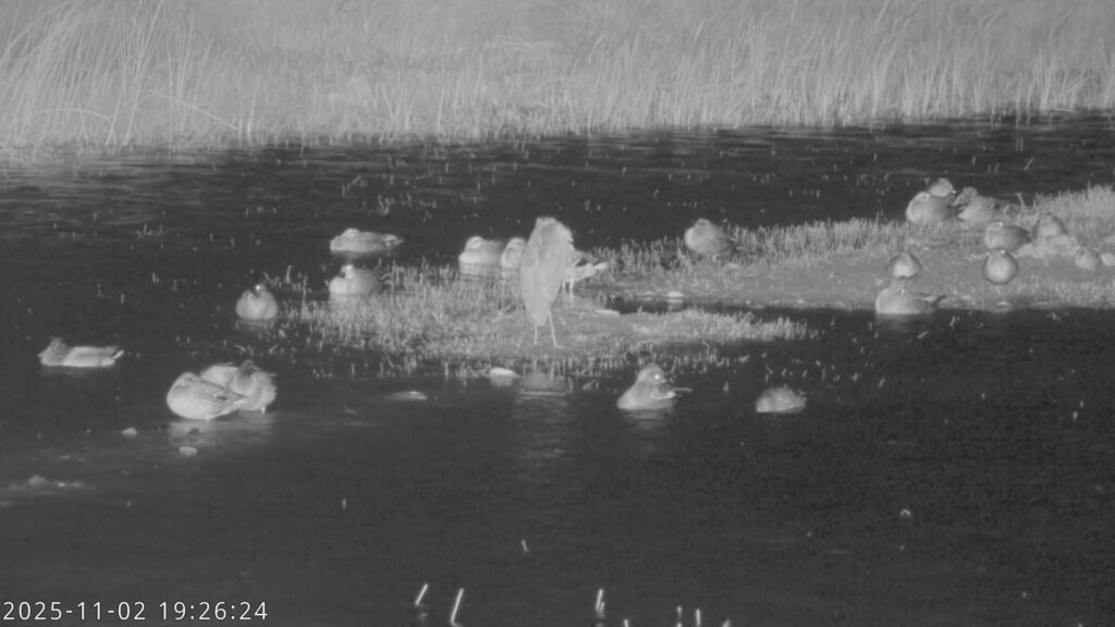 マガモ、コガモ、カルガモ、オカヨシガモが飛来しているようです。