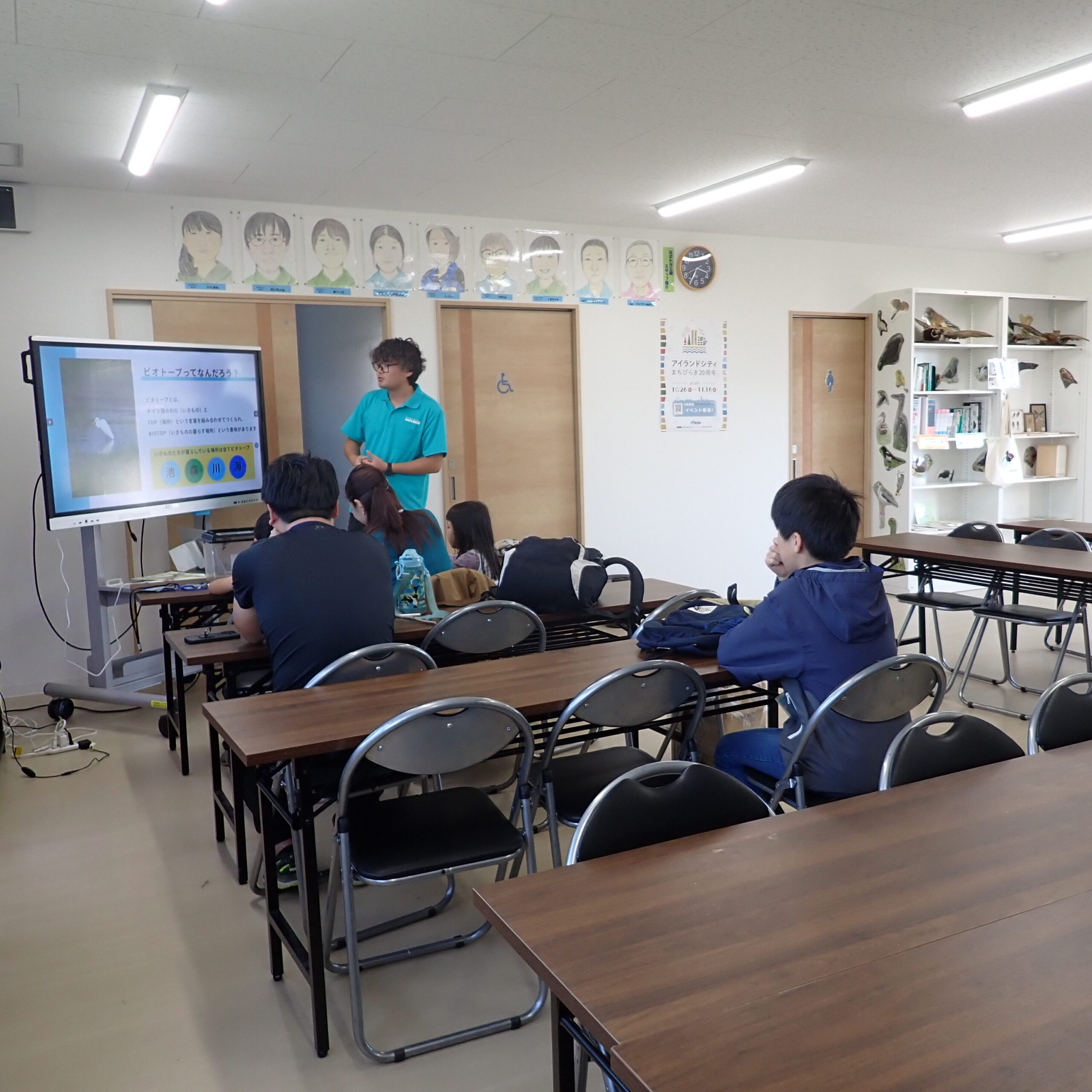 まず、体験ビオトープと通常のビオトープとの違いを学び、なんのために作るのかという講座を行いました。