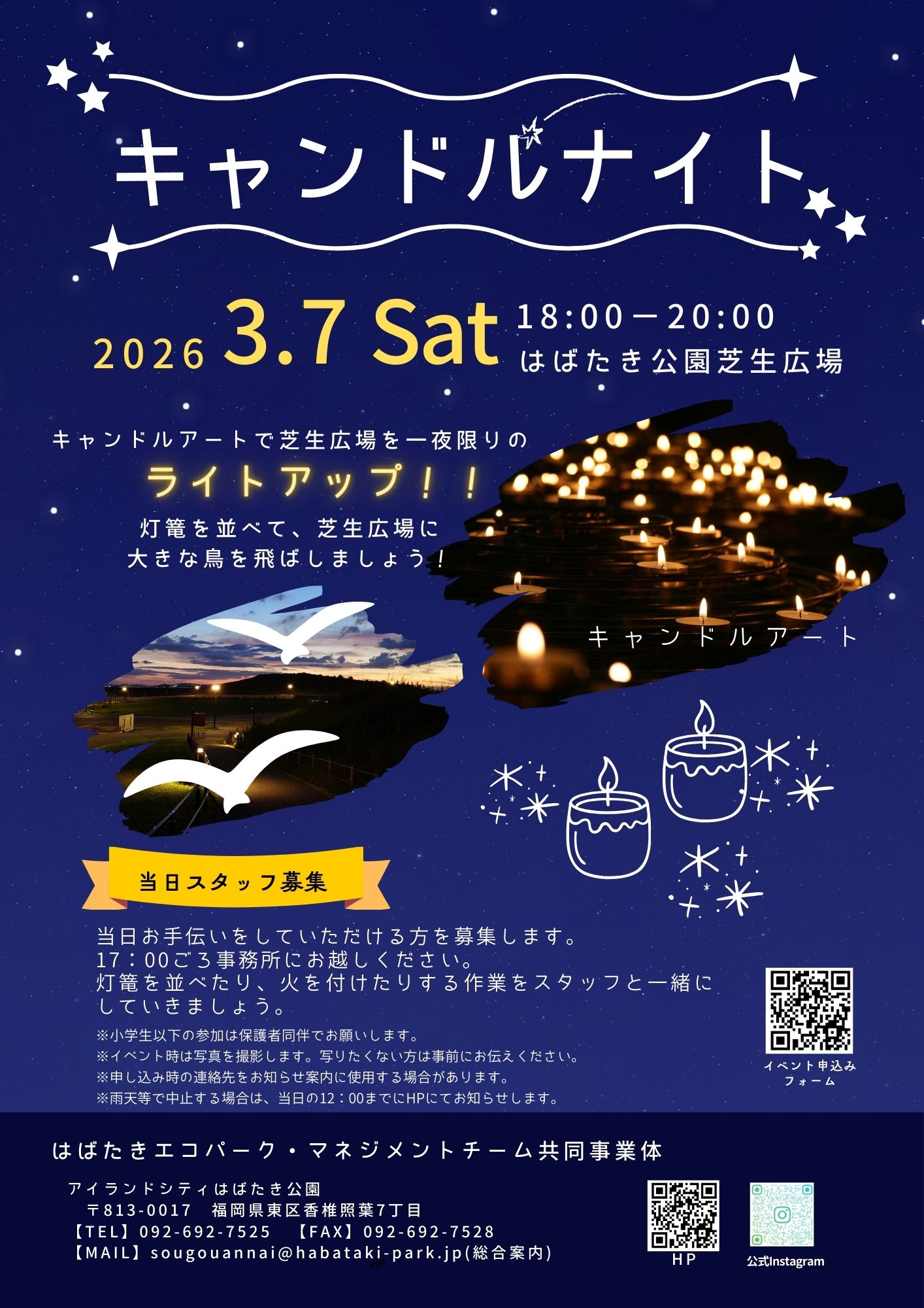 お手伝いをしてくれる方も募集していますので、ご協力いただける方は17時ごろにはばたき公園の事務所にお越しください。灯篭を並べたり、火をつける作業をスタッフと一緒にしていきます。