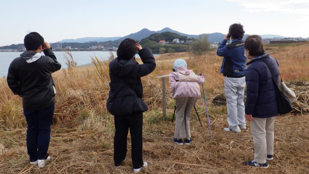 湿地内にカモなどの水鳥が見られなかったため、今回は湿地内を回りながらバードウォッチングを行いました。