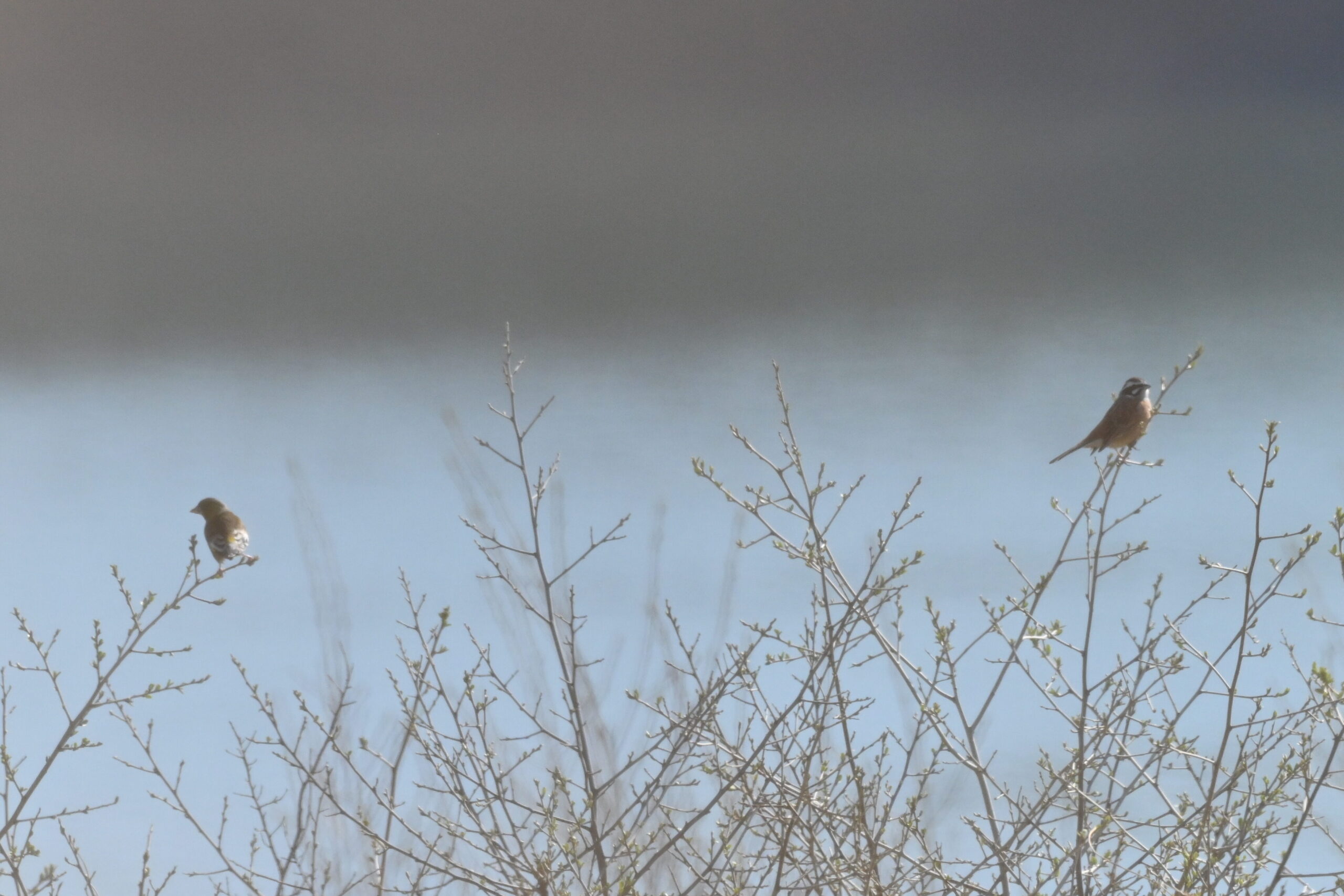 ホオジロやヒバリが盛んにさえずる様子が観察でき、カワラヒワも顔を出してくれました。