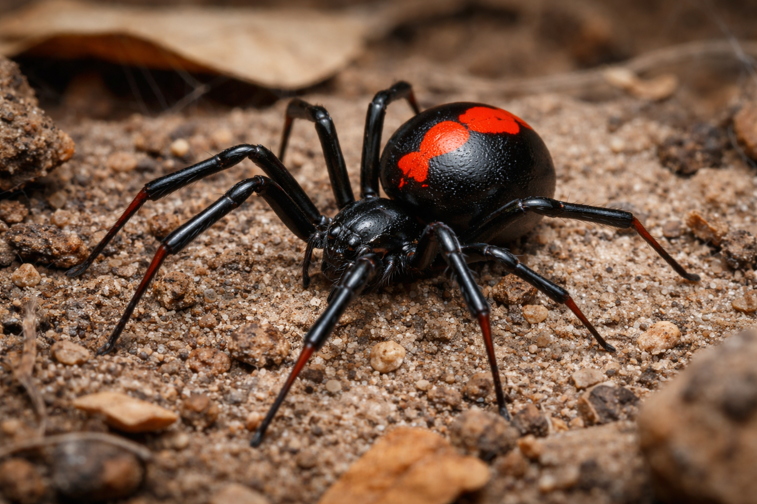 海外から日本に入ってきて、特定外来生物に指定されている毒グモのセアカゴケグモ。